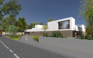 Berettyóújfaluba 4 csoportos óvodát tervezünk. Jelenleg a vázlatterv szintű terveken dolgozunk. Az épület az utcáról visszahúzva került kialakításra, a bejáratnak kellő teret adva. A csoportszobák az udvar felé tájoltak. Az épület alsó felülete bontott-tégla, a felső vakolt.